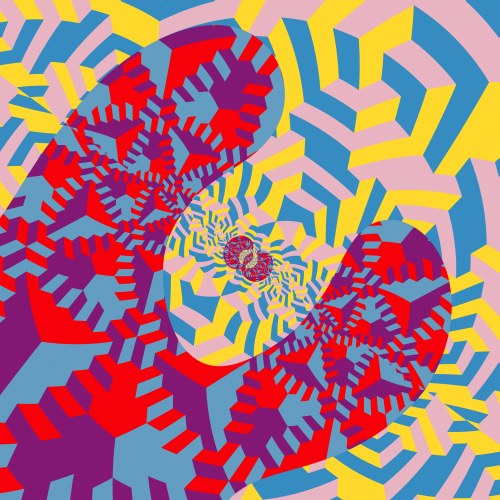 Blockbild einer Aufstebenden Idee - das flächige Spiel zwischen den einzelnen Farben und der Rauhheit der Punkte produziert eine eigene Gedankenwelt.