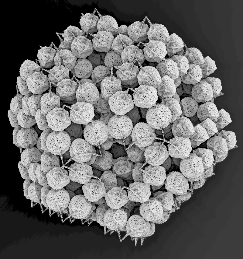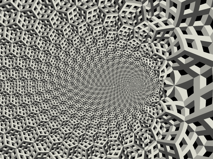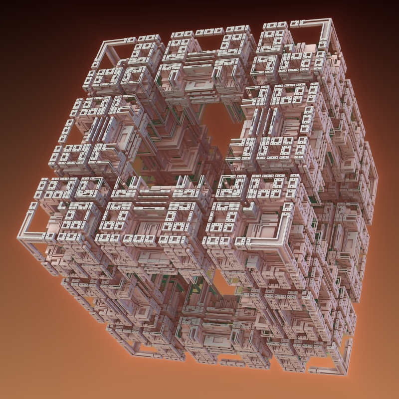 In bestimmen Richtungen gesteuert, lässt sich der Schwamm oder Qubus auflösen. Es entsteht eine fraktale Leichtigkeit.