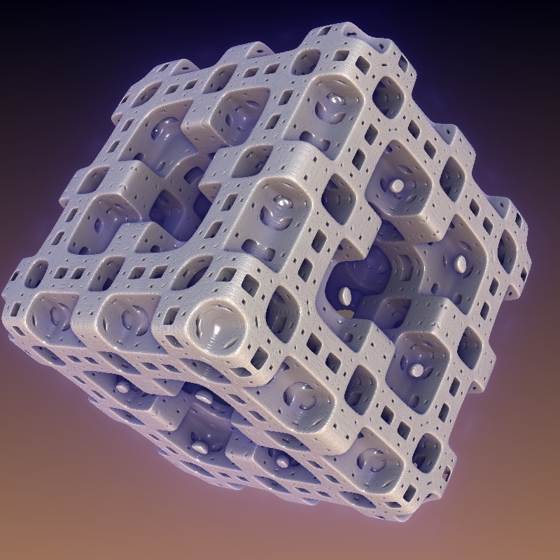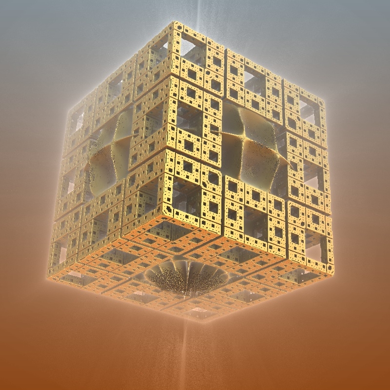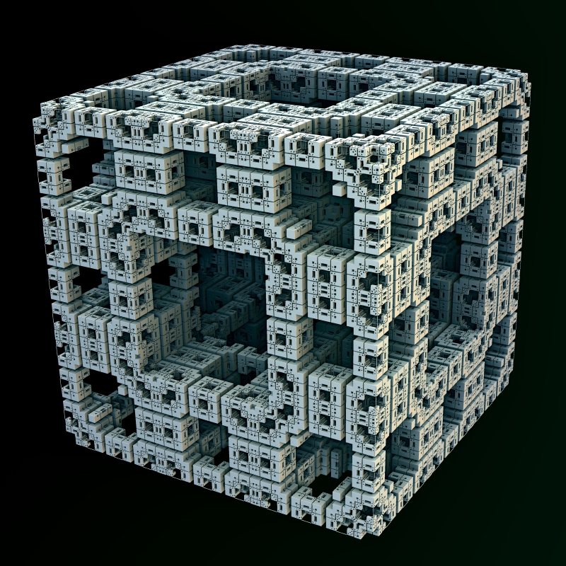 Der Menger-Schwamm (auch: Menger-Kurve) gehört wie das Sierpinski-Dreieck und die Koch-Kurve zu den Objekten der fraktalen Geometrie. Der nach Karl Menger benannte Schwamm wurde zum ersten Mal 1926 in seiner Arbeit über Dimensionalität von Punktmengen veröffentlicht. (Wiki)