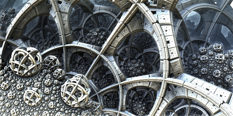 Wie in einem Endzeitszenario lassen fraktale Formeln Maschinenteile in Bergen von mathematischem Schutt versinken.